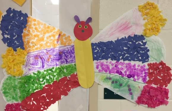 Our classroom door all decked out in honor of The Very Hungry Caterpillar’s 50th Anniversary!