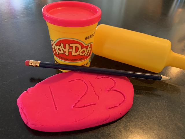 The Play-Doh offers a great sensory element as kids form their letters and numbers. I find that the softer Play-Doh works best. Older dough that is a little on the drier sided is a bit more difficult to work with. Try using a homemade play dough or a fresh can of store bought dough.