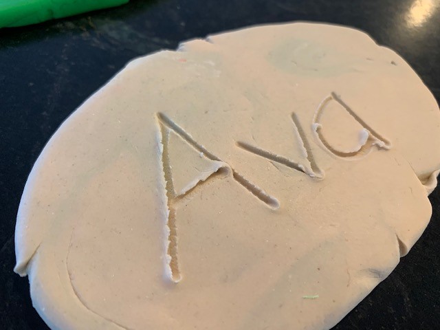 Work on name recognition and name writing skills. If your love bug is a beginner, write her name on an index card and allow her to copy it onto the Play-Doh. If that is still too difficult for her, lightly write her name in the Play-Doh and let her trace the letters you wrote.